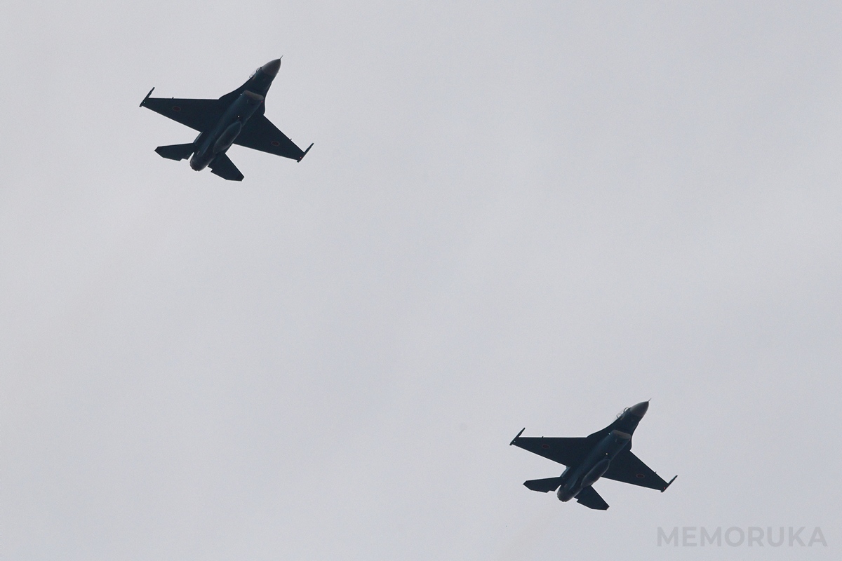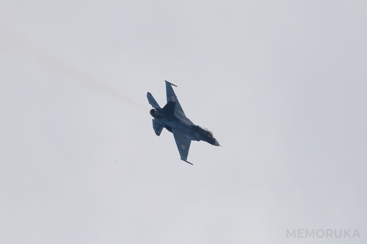 今年の展示内容案内で驚いたのが、F-2の飛行展示。松島基地から2機が飛来してくれました。