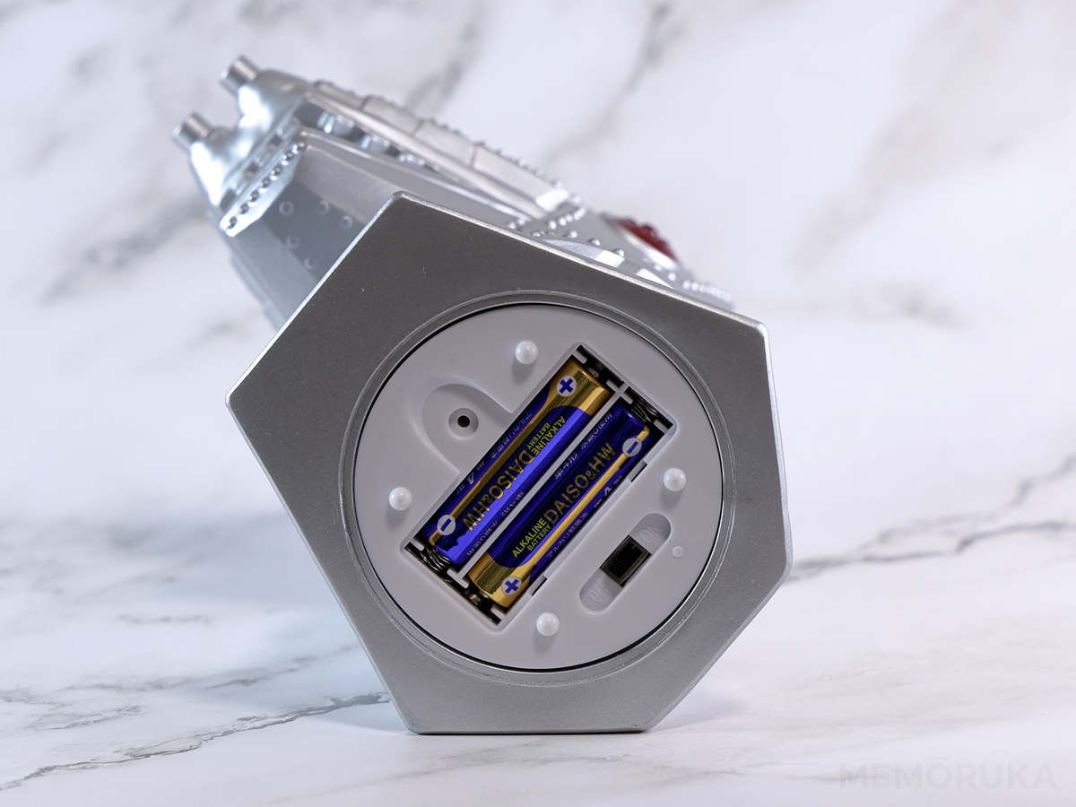 なお、商品名はルームライトではありますが、あくまでゲーセンの景品なので、本格的なライトではない、いわゆる玩具の類。電源はACではなく、単4電池2本です。