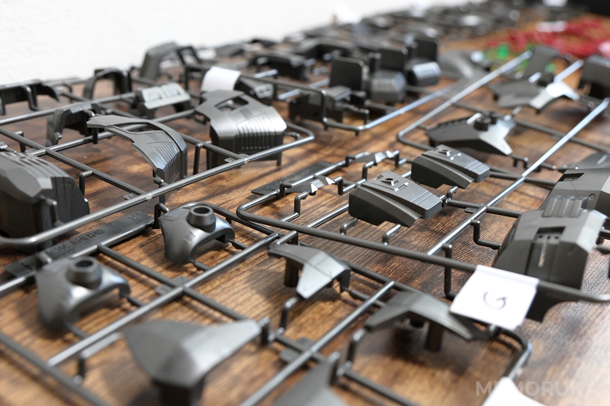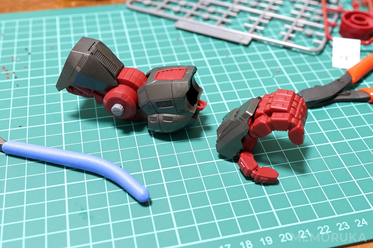 関節のパーツが増えてきて、はめ込む際に固かったり、3つ以上のパーツを互いに保持しながら組み合わせる箇所が出てくるので、少しだけ組み立て難易度が上がります。