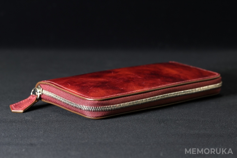 このシュリンクレザーモデルの大人革袋は、革の経年変化を楽しむというよりは、長く使い続けても新品時の風合いがキープできることにフォーカスしたレザーを採用しています。そのため、大人革袋を検討している方は、どのレザーが使われているモデルなのかを必ずチェックしたほうが良いと思います。