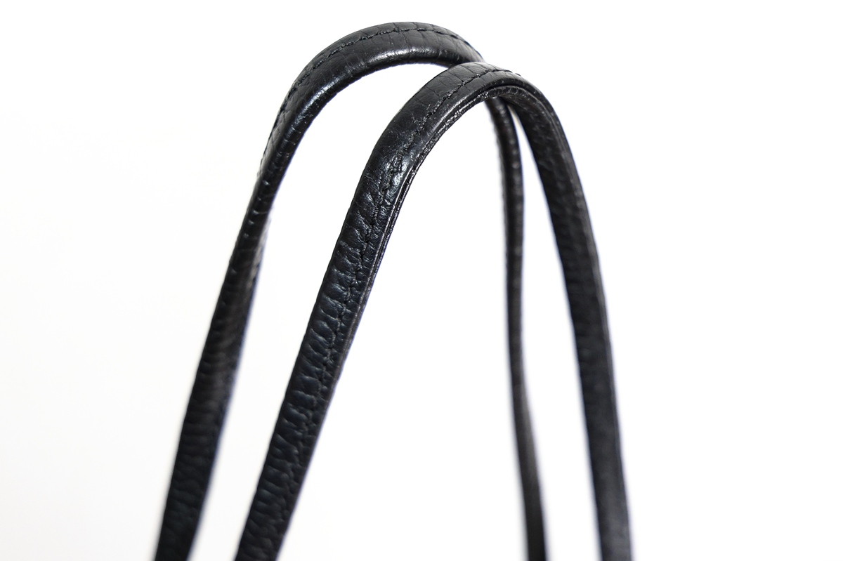 ここもちゃんと革で作られている上、ありがちなペラッとしたフラットハンドルではなく、ショッパー風というコンセプト通りの「紐風」レザーハンドルになっています。