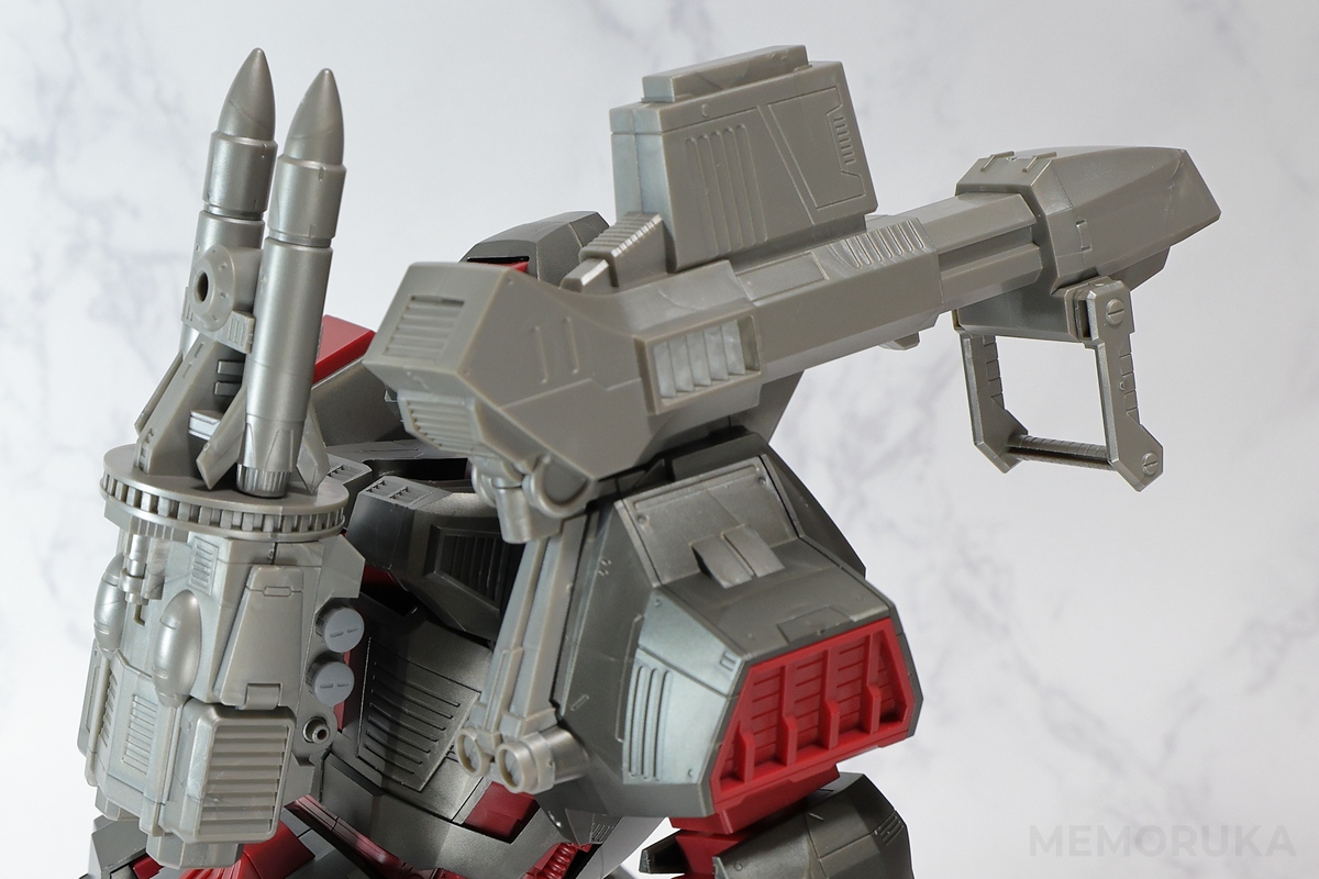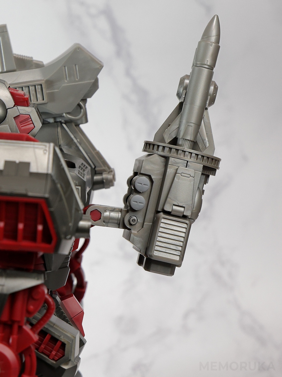 旧トミー版アイアンコングでは実際にミサイルの玩具を発射できるギミックが搭載されていましたが、リアライズモデルではその機能はオミット。弾倉にはディスプレイ用に1発だけ装填する仕様です。これは残念。