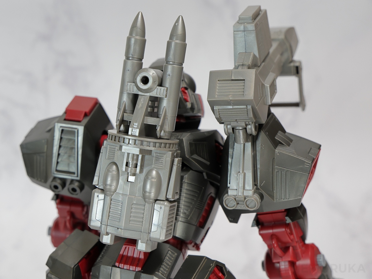 バックパックの2連装ミサイルは、従来のイメージを崩さない範囲でまとめられており、大きなアレンジはなし。